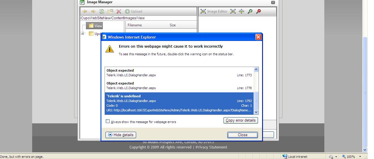 Also, could you please, send us the Fiddler’s log when loading the page with RadEditor and when loading the Image Manager?