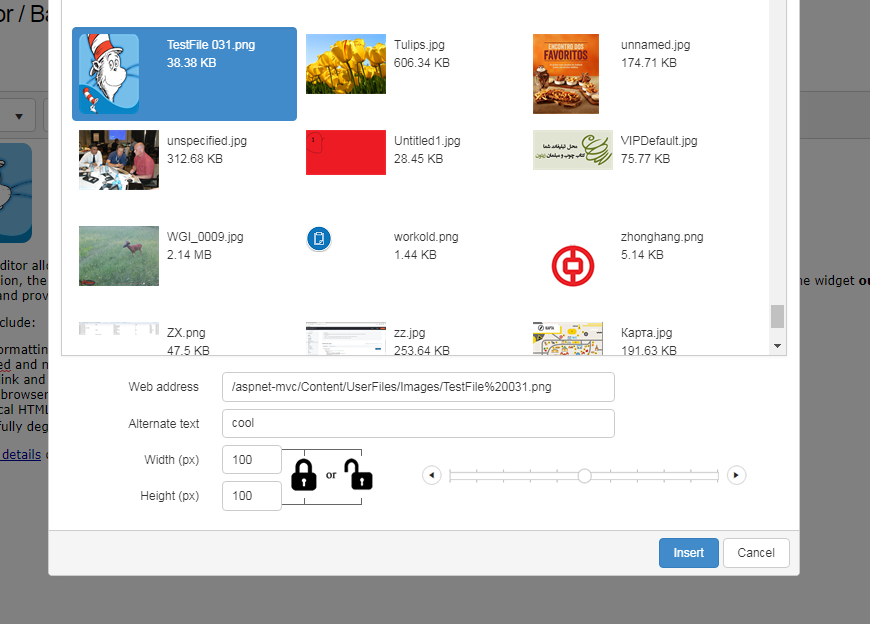 The x-browser image selection and resizing is definitely a must have feature, but we need more votes in the portal to raise its priority in our ToDo list.
