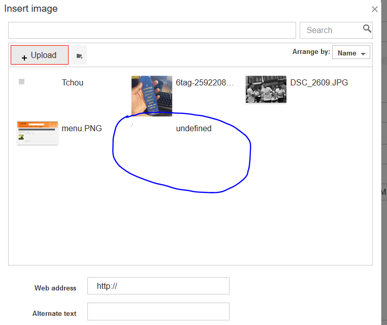 As you can see in the screenshots, if the pictures are already in the library, the thumbnails are created but if you just upload the file, the thumbnail is not created (because of the undefined).