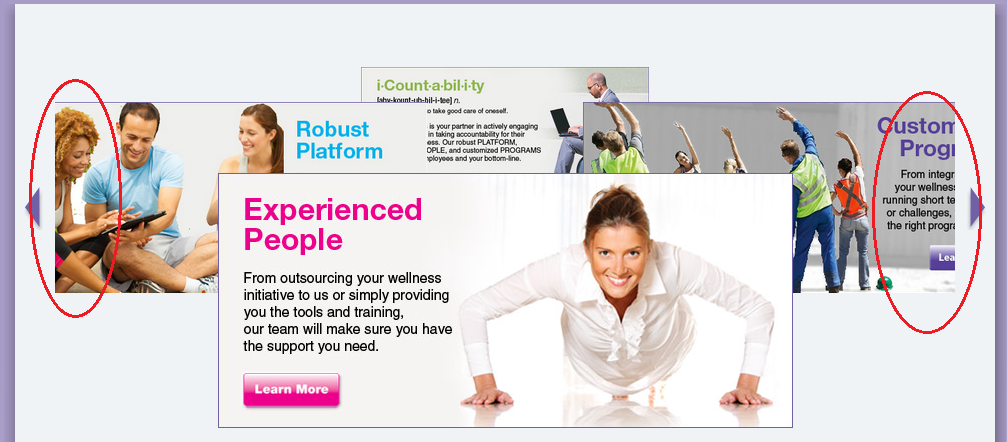 <div style="height: 450px; background-color: #f0f3f6;"> <asp:Image ImageUrl="~/images/carousel_rt.gif" ID="img_right" AlternateText="right" runat="server" Style="cursor: pointer; float: right; margin-top: 180px;" /> <asp:Image ImageUrl="~/images/carousel_left.gif" ID="img_left" AlternateText="left" runat="server" Style="cursor: pointer; float: left; margin-top: 180px;" /> <telerik:RadRotator ID="radCarousel1" runat="server" Width="900px" ItemWidth="575px" Height="430px" ItemHeight="255px" ScrollDuration="1000" FrameDuration="3000" RotatorType="CarouselButtons" Style="margin: 0px auto 0px auto;"> <Items> <telerik:RadRotatorItem> <ItemTemplate> <img src="images/carouselicount.jpg" /> </ItemTemplate> </telerik:RadRotatorItem> <telerik:RadRotatorItem> <ItemTemplate> <img src="images/carouselplatform.jpg" /> </ItemTemplate> </telerik:RadRotatorItem> <telerik:RadRotatorItem> <ItemTemplate> <img src="images/carouselpeople.jpg" /> </ItemTemplate> </telerik:RadRotatorItem> <telerik:RadRotatorItem> <ItemTemplate> <img src="images/carouselprograms.jpg" /> </ItemTemplate> </telerik:RadRotatorItem> </Items> <ControlButtons LeftButtonID="img_left" RightButtonID="img_right" /> </telerik:RadRotator></div>