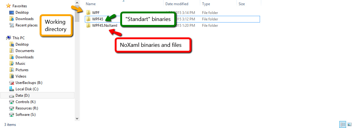 Regarding the folders with binaries that are created, you can think of the WPF folder as a "working" directory. Basically, running the Build_WPF45_Xamlless.bat executable will create the WPF folder and eventually copy all files related to the use of the control with implicit (NoXaml) styling in the WPF45.NoXaml folder. If you then run the Build_WPF45.bat, again the WPF folder will be populated with files and eventually all files you need to use in your project will be copied to the WPF45 folder. In short, you need to use the files in the WPF.NoXaml\Dev directory.
