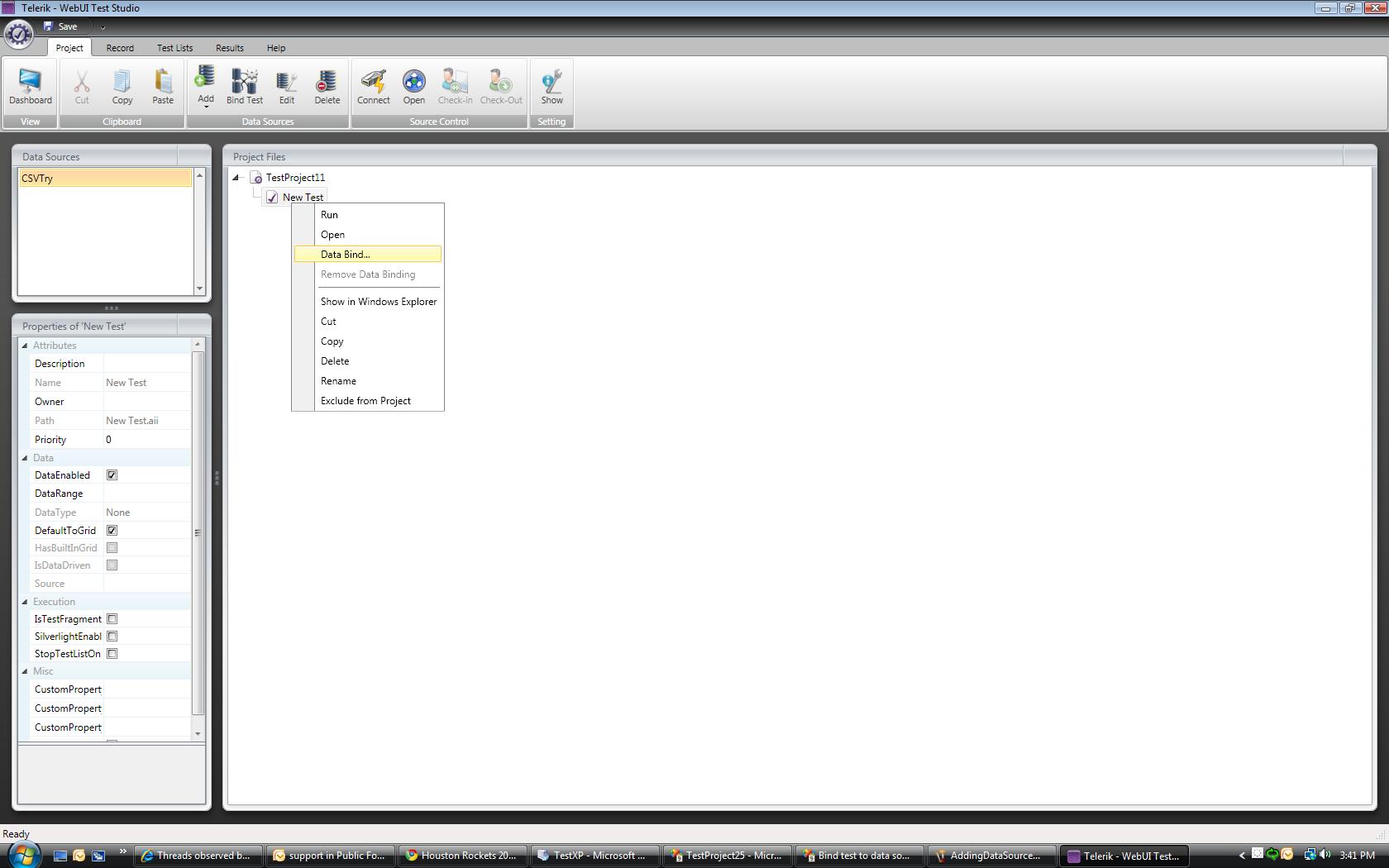 Certainly! You start with the VS-AddDataSource.png screen shot for adding the data source. Once you've fully defined your datasource follow these steps to bind a test step property to a value from the datasource: