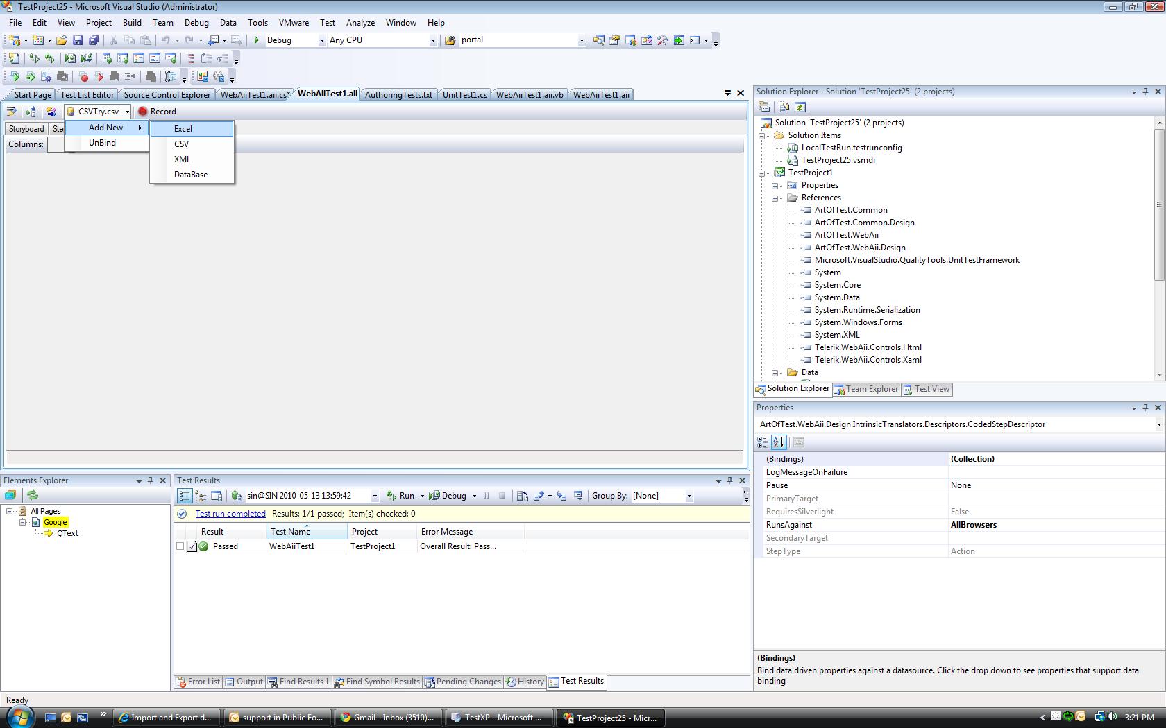 Since everything is in a single step, I'm not able to figure out what exactly is the problem there. I tried to copy this function in aii.cs file as well and thats failing too. It reads the csv file, but when it tries to get the value in TestContext, i think there is some problem. Please let me know if what I'm doing is correct. Also please let me know if there is any other way to acheive this. Thanks a lot.