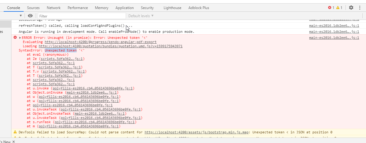 ERROR Error: Uncaught (in promise): Error: Unexpected token '<'