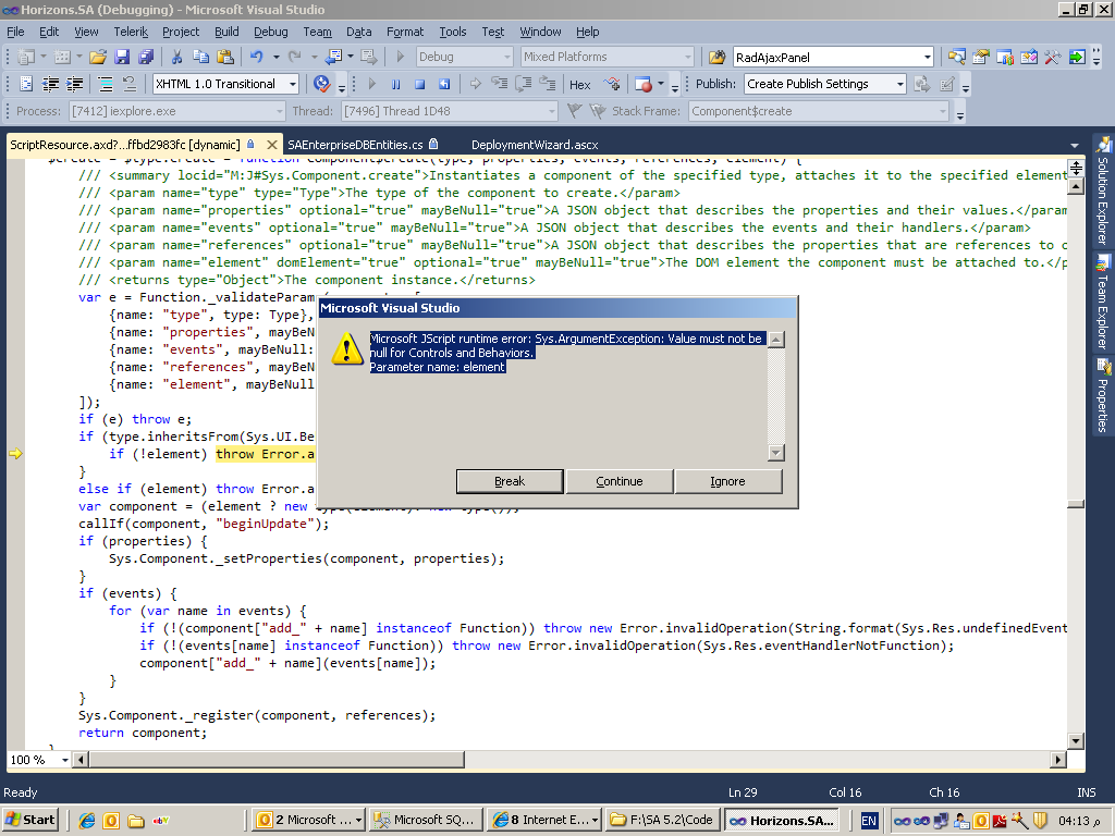 Microsoft JScript runtime error: Sys.ArgumentException: Value must not be null for Controls and Behaviors.