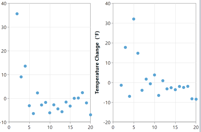 The second shows two charts with very similiar ranges. Both range from about -9 to 35, yet the second chart is using an 'incorrect' minimum of -20 while the first is correctly using -10.