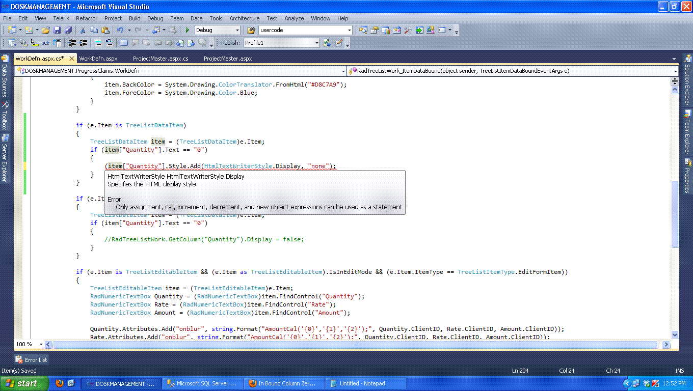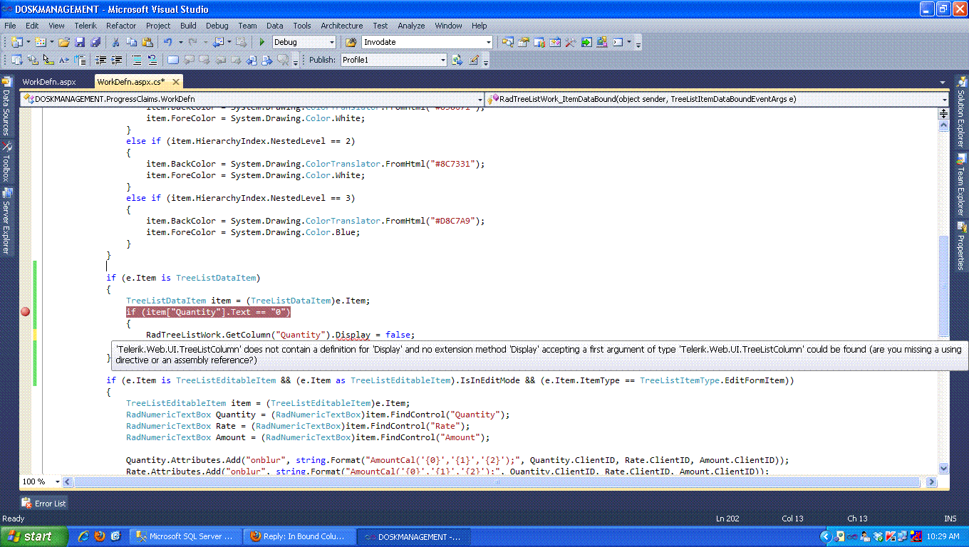 protected void RadTreeList1_ItemDataBound(object sender, Telerik.Web.UI.TreeListItemDataBoundEventArgs e){ if (e.Item is TreeListDataItem) { TreeListDataItem item = (TreeListDataItem)e.Item; if (item["UniqueName"].Text == "0") { RadTreeList1.GetColumn("UniqueName").Display = false; } } }Thanks,