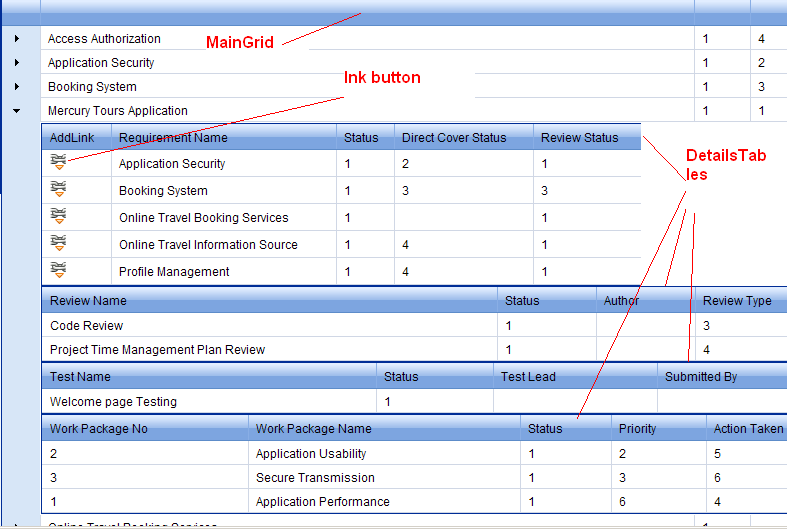 2.In the First GridTableView I need to have a Link Column