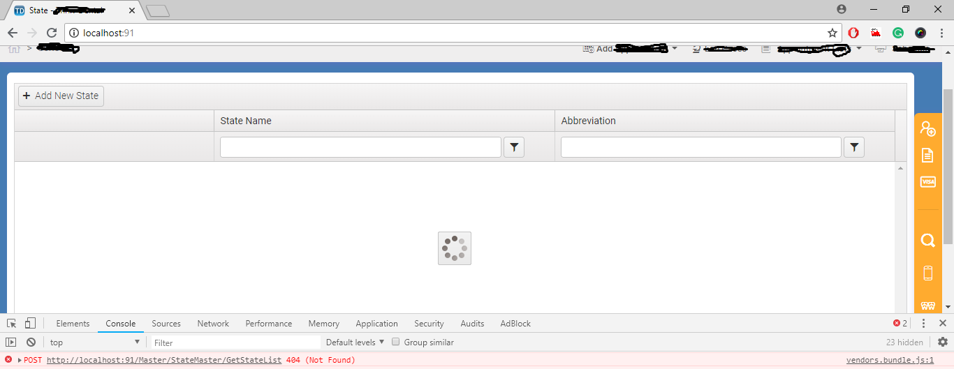 Error : - "http://localhost:91/Master/StateMaster/GetStateList 404 (Not Found)".