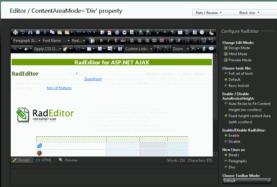 At the very least you need to fix the Black skin for the RadEditor.