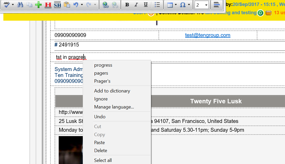 Right click option brings (Insert Row Above, Insert Row Below, Delete Row, table properties) option. Looks like in chrome browser, it's overriding spelling correction. Could you please help on this issue?