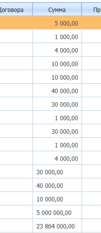 <telerik:RadGrid id="RadGridTreb" runat="server" AutoGenerateColumns="False" AllowMultiRowSelection="True" AllowSorting="True" GridLines="None" Culture="ru-RU" Width="100%" EnableEmbeddedSkins="False" OnPreRender="RadGrid_PreRender" Height="300px" EnableViewState="False" OnInit="RadGridTreb_Init"> <ExportSettings FileName="PlatCalendar"> </ExportSettings> <ClientSettings AllowColumnHide="True" AllowRowHide="True" AllowColumnsReorder="True" ReorderColumnsOnClient="True"> <Selecting AllowRowSelect="True"></Selecting> <DataBinding FilterParameterType="Linq" Location="FinanceService.asmx" SelectMethod="GetRowsTableLinq" SortParameterType="Linq"> </DataBinding><Scrolling AllowScroll="True" SaveScrollPosition="True" /> <Columns> * * *<telerik:GridCalculatedColumn DataFields="CRE_AMOUNT_EFFECT" HeaderText="Сумма" DataType="System.Decimal" UniqueName="CRE_AMOUNT_EFFECT" Expression="{0}"> <HeaderStyle Width="80px" HorizontalAlign="Center" ></HeaderStyle> <ItemStyle Width="80px" HorizontalAlign="Right" ></ItemStyle > </telerik:GridCalculatedColumn> * * *