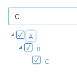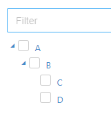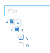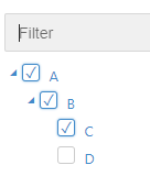 However, when I apply a filter (i.e. text contains C), node D get's hidden. When I now check node C, both nodes A and B also get checked, while they should be indeterminate since node D is not checked.