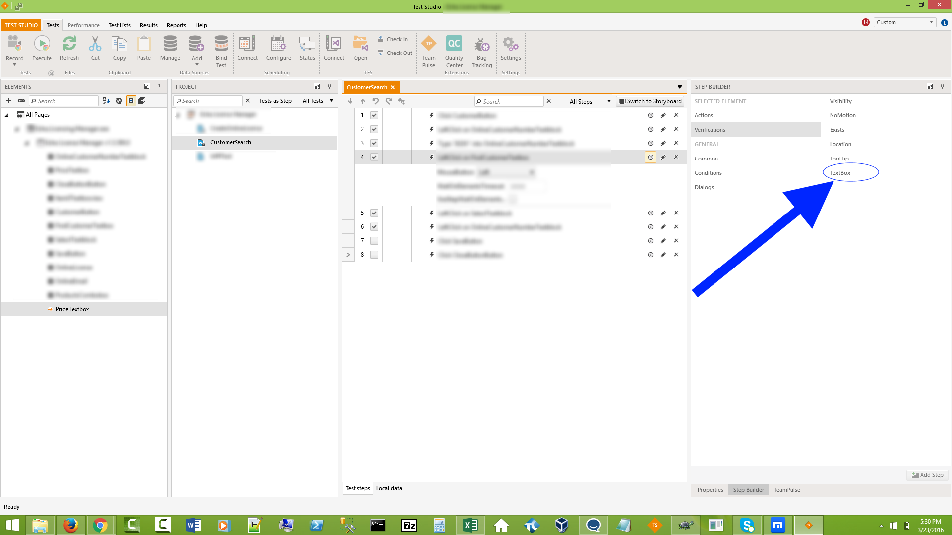 When building a verification step using Step Builder for a WPF test, the TextBox targets are incorrect for some TextBox elements, even though the Find Expression on each different TextBox is similar. As you can see in the attached images, the targets of the Verification Step in Step Builder are different even when both have XamlTag = TextBox as part of the Find Expression. These images also only show part of the issue, since sometimes no element-specific verification targets (e.g. TextBox, TextBlock) show up at all when selecting a TextBox element. We have tried a number of changes to see if we can alter the inconsistent behavior, such as relocating the element and altering the Find Expression afterward, restarting Test Studio, and manually changing XamlTag to see if the Verification Step targets change, however, the inconsistency persists. This makes it impossible to create a verification step to ensure the TextBox has the correct text value.