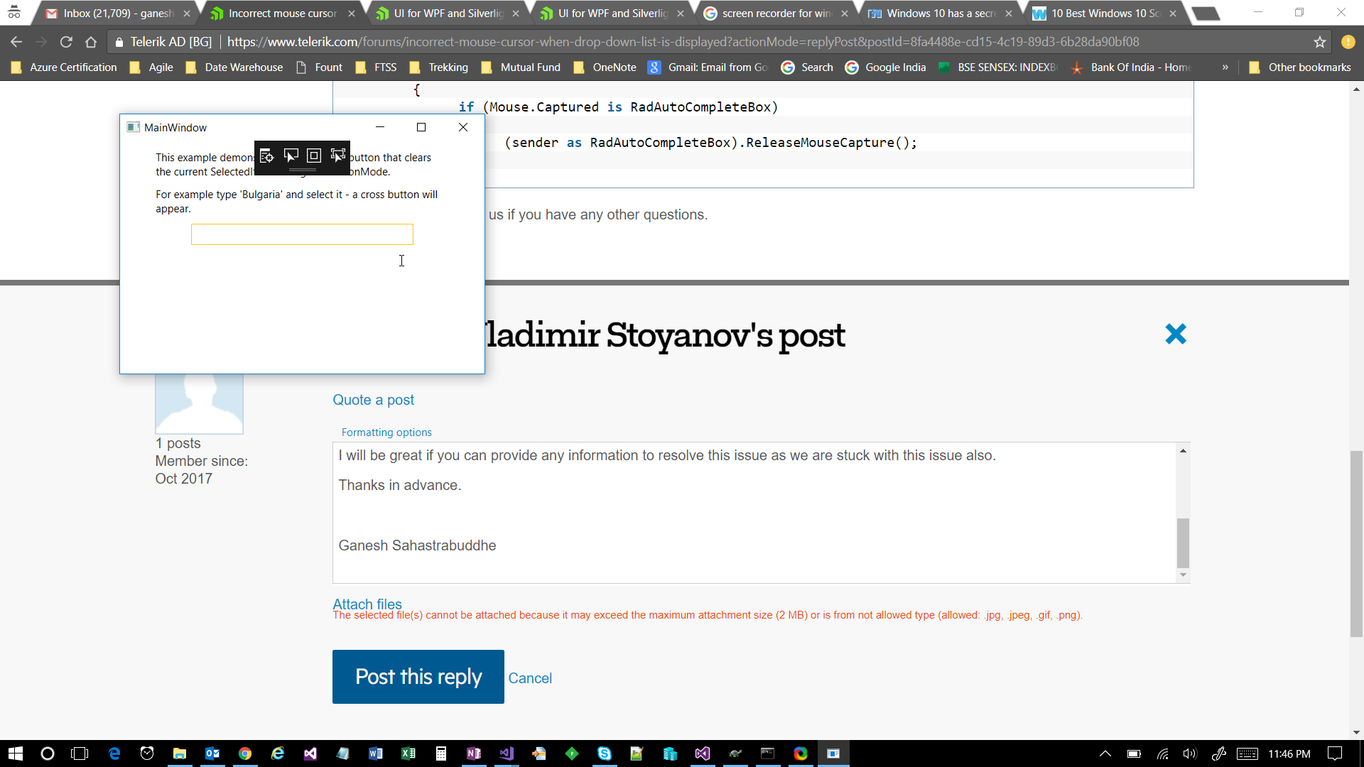 When we type anything in the textbox and then after clicking on clear button, mouse issue does not reset. I have attached the video which will help you to know the exact issue.