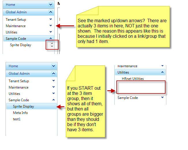 Basically, each child group of items does not seem to get their own height. If I have 1 child in one group and 10 in the other, I would expect a height to accomodate the 1 item while I am looking at the 1 item group, and then when I click around and into the group that has 10 items, I would expect to see that area expand to show 10 items. What happens is whatever you click/load first has the child height set for that group...and that is applied to EVERY OTHER child group regardless of how many items are in them. The only differennce between now and December is that before they just disappeared (overflow hidden), and now they are in an overflow x. We can't have an overflow x unless that is how the user wants it configured with a particualr height set. But, that is impossible to know when using dynamic data to fill in the RadPanel (sitemap datasource coming from database).