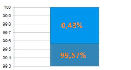 When the Chart type is set the stacked 100%, all values from 0 to 100 % should be shown: