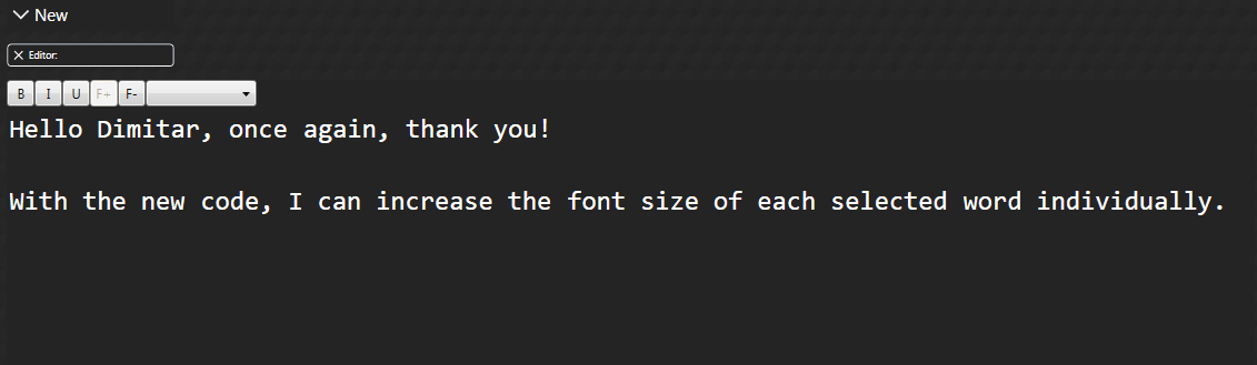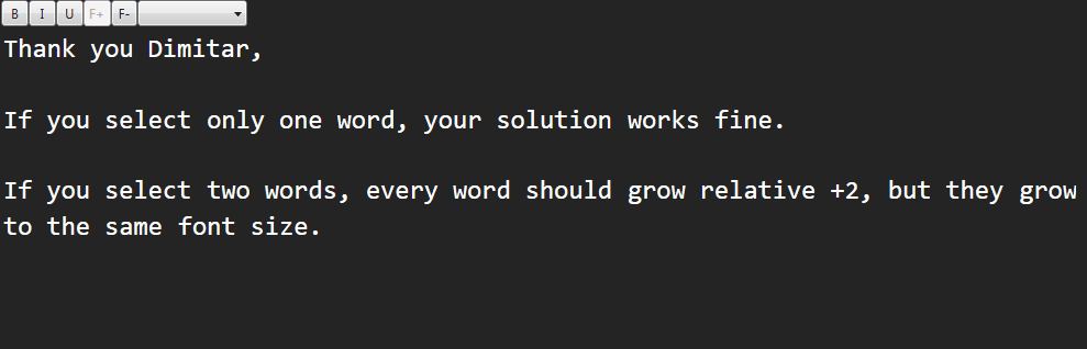 Now the user selects only the word 'great' and I want to increase the fontsize +2 only for this word.