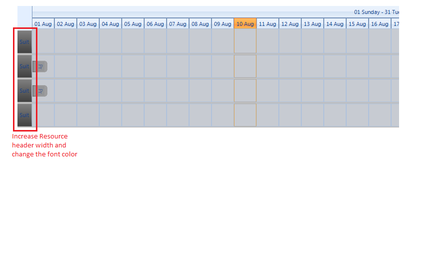 Dim element As TimelineGroupingByResourcesElement = TryCast(Me.radScheduler1.SchedulerElement.ViewElement, TimelineGroupingByResourcesElement)element.ResourceHeaderWidth = 200element.Font = New Font("Arial", 22)element.ForeColor = Color.YellowMe.radScheduler1.ActiveViewType = SchedulerViewType.TimelineMe.radScheduler1.GroupType = GroupType.ResourceAll the best,