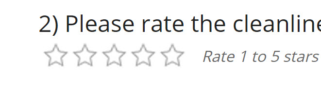 Hello, we are trying to deploy the 5 star rating question via tablets for onsite surveys. The stars are way too small to use on touch for a diverse population base (old people with fat fingers). Is there an easy way to do this? Has this been developed before? Also, the current image quality of the stars is TERRIBLE, so I'm assuming new stars are required. Thx for the help!!!