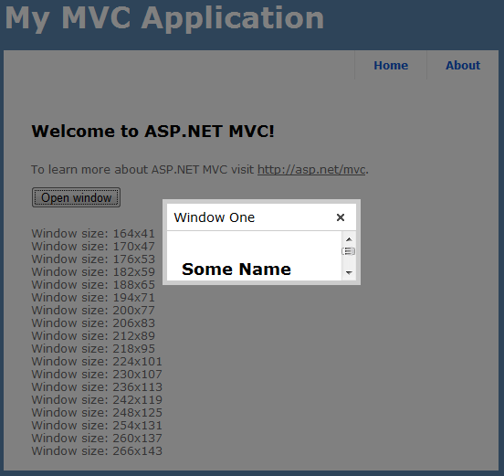 var window = $("#Window").data("tWindow");$(window.element).find(".t-window-content").css("height", "auto").css("width", "auto");window.content("Content test");If you report more information about these bugs in the MVC Editor we will do our best to fix them.