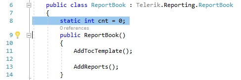 So, I created a static variable just above the ReportBook constructor and initialized it to 0. See image01.jpg. The highlighted code is what was added.