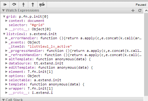 - The "listview1" variables is created by executing the "data" method. So it contains the Kendo widget.