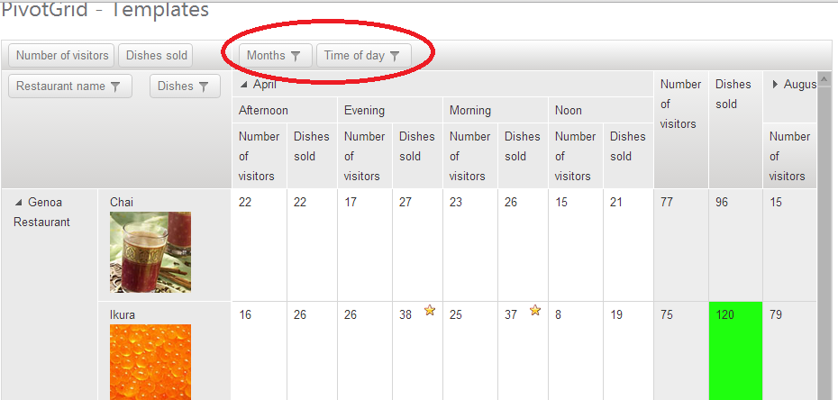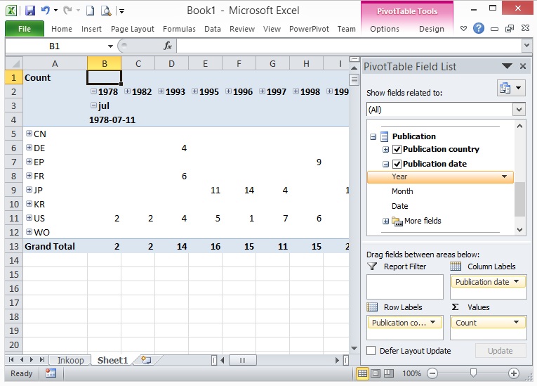 However, I was dragging a dimension field with a user hierarchy into the grid. Here too, all values at the top level are immediately shown, but none of these is expanded by default. In the attached example you can see I dragged the publication date on the grid, which initially display only year values (1978 was manually expanded by me). With the Telerik pivotgrid the entire hierarchy is initially expanded down to the day level.