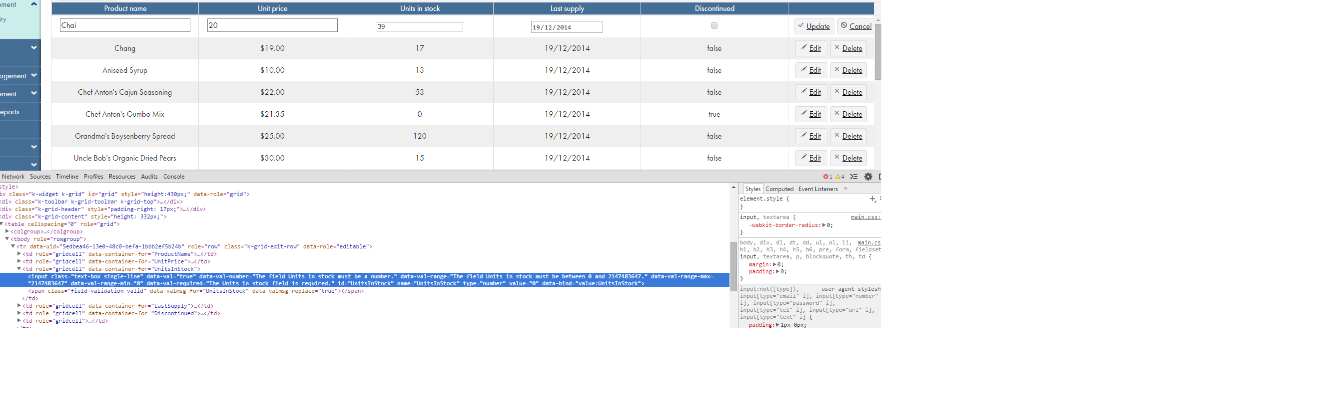 I am having a problem in Kendo grid inline editor mode. When I click on Edit button the rendered html do not show three spans having classes "k-widget k-numerictextbox", "k-numeric-wrap k-state-default" and "k-select" respectively. Please share what can cause this problem and how to resolve it.