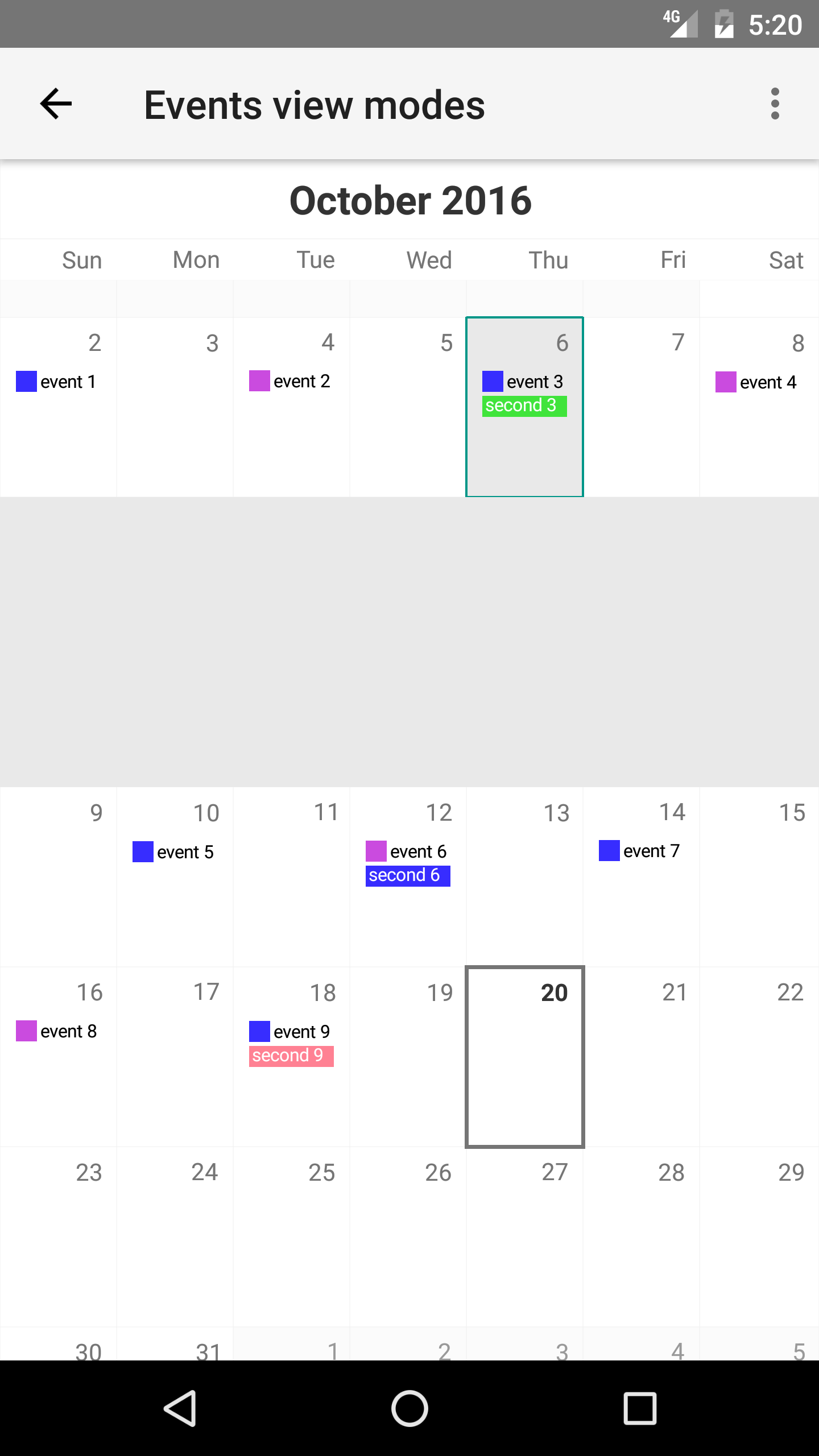 When using the inline event display on Android, the event text intermittently does not show up. This can be reproduced with the SDKAngular example from the 1.4.1 download. Simply run the example, go into the calendar, events, and change the event display to "Inline".