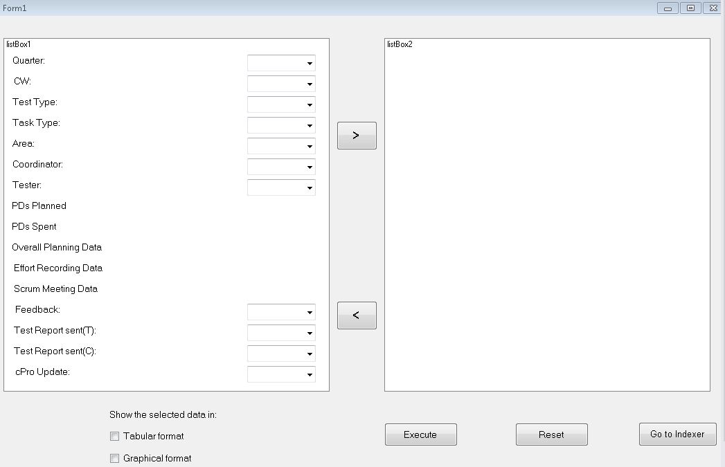 Q2, Q3, Q4" as an item in listbox1 and select the entry Q1 in it, and