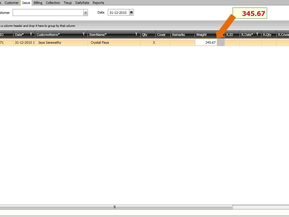 i diaplying the weighing scale value in label control but not in the RadGridView.