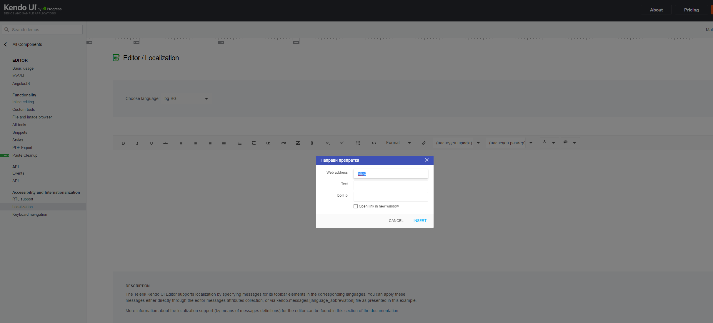 I'm try to localize Insert Hyperlink popup in Kendo Editor by using kendo culture, but unfortunately I can't make it.