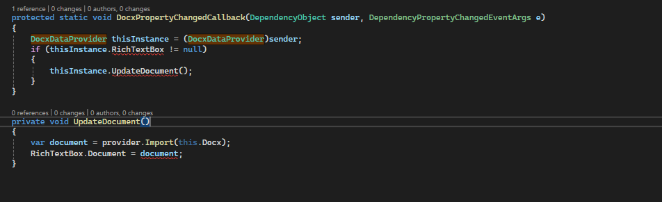 Error CS1061 'DocxDataProvider' does not contain a definition for 'RichTextBox' and no accessible extension method 'RichTextBox' accepting a first argument of type 'DocxDataProvider' could be found (are you missing a using directive or an assembly reference?)