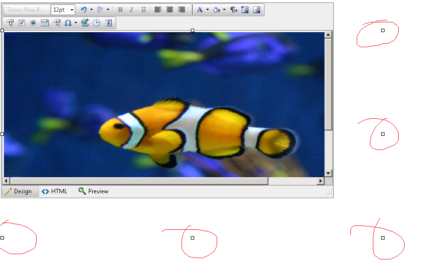 When inserting an image which is having width and height larger than the editor's width and height, the coordinate are showing outside the editor as shown in the attached image, how can I show the coordinates inside the editor?