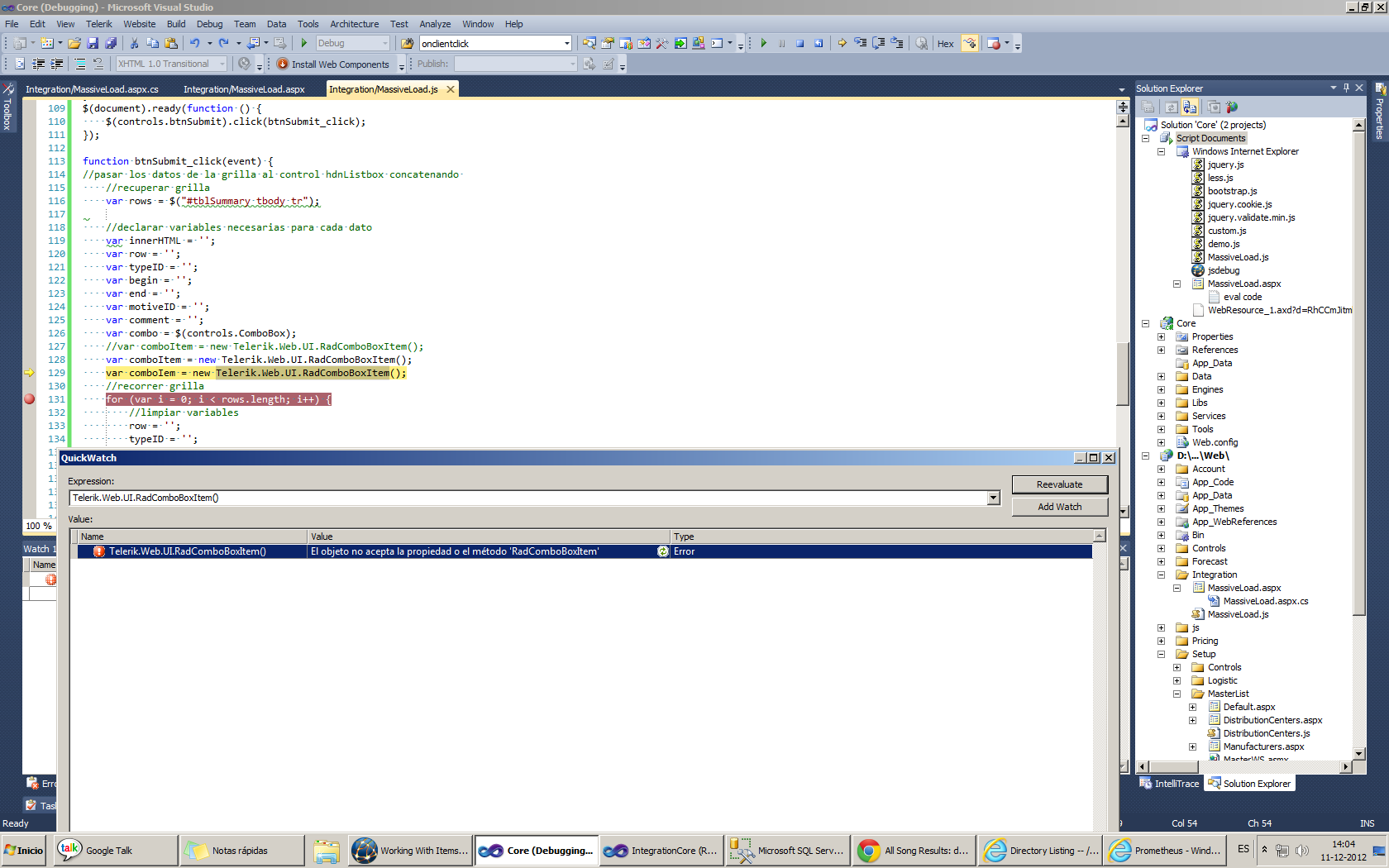 It is really weird so I decided to open a "quiick watch" window and started to evaluate the Telerik.Web.UI object. As I expected, the "RadComboBoxItem" is not present.