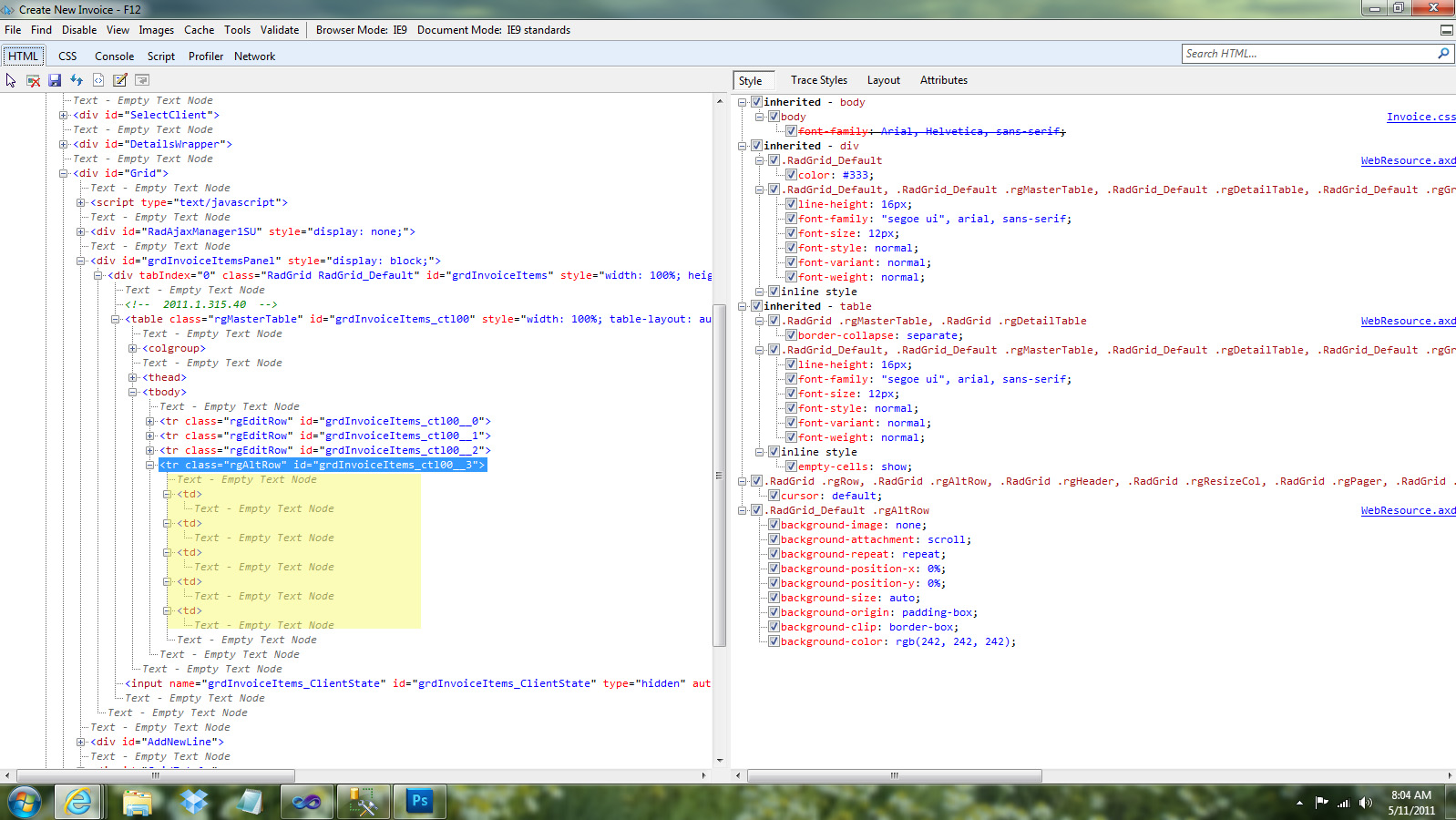 Thank you kindly for you reply. I've tried your example and it worked but the row appears as a grey emtpy horizontal bar until i refresh the page and do a post back then the row apears as it should with columns and controls. I included a picture of before the page refresh, after the page refresh and the source code before the post back so you can get an idea. In the source you can see that the row is there but it's showing empty td tags. Can you take a look? I greatly appreciate your assistance with this. Thanks.