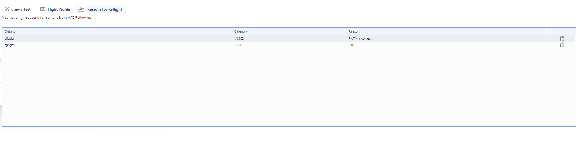 reasons for reflight from A/C Follow up.