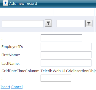 <telerik:GridEditCommandColumn ButtonType="ImageButton"> </telerik:GridEditCommandColumn>I just only want to provide Insert functionality to gridview not edit functionality.