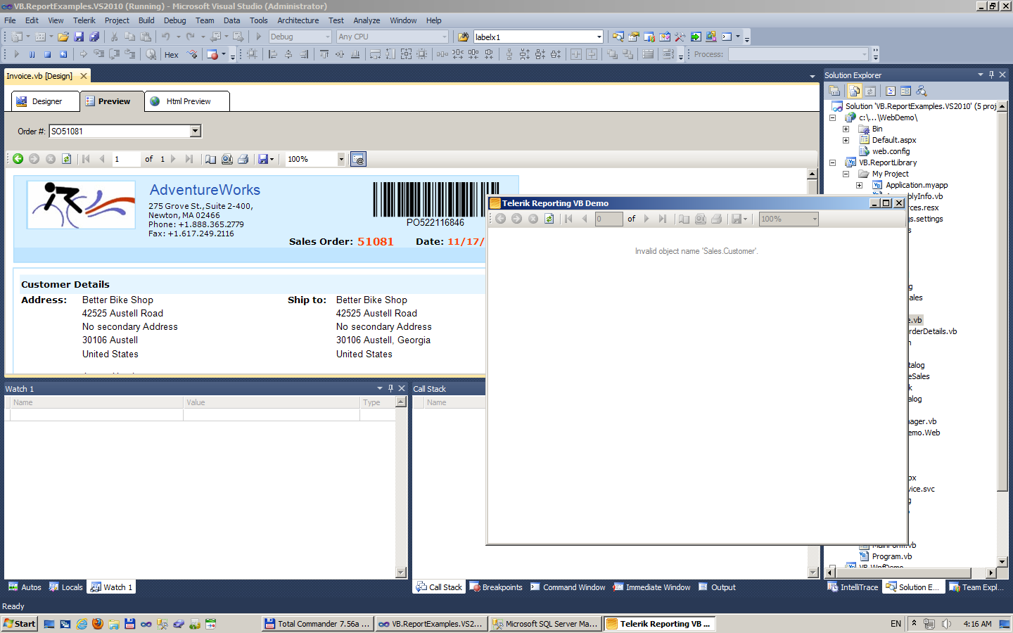 (Note: the screenshot was taken after previewing the invoice and just clicking run, then select the same report in the demo's main window)