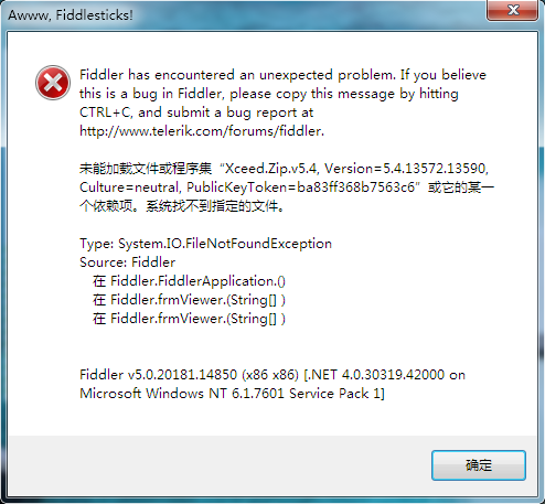 Fiddler has encountered an unexpected problem. If you believe this is a bug in Fiddler, please copy this message by hitting CTRL+C, and submit a bug report at http://www.telerik.com/forums/fiddler.