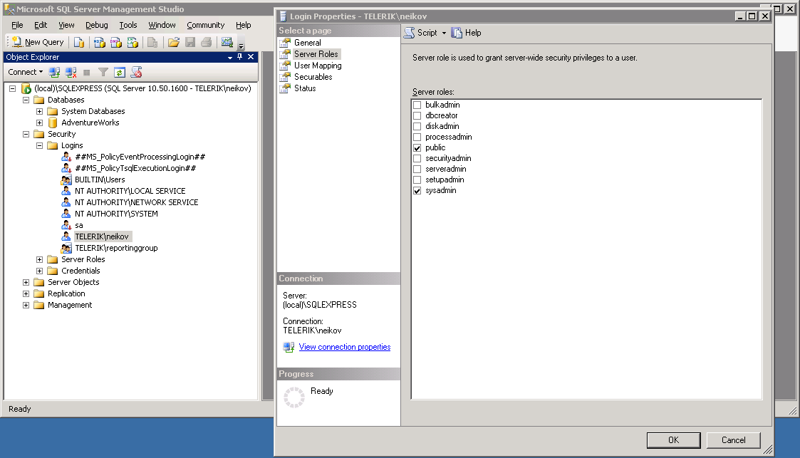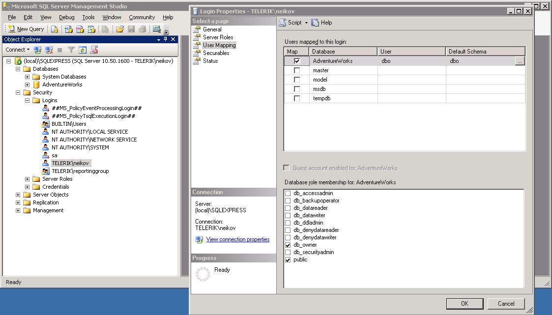 Telerik Reporting Examples require AdventureWorks installed on the local machine SQL Server. If you already has this DB installed from other product please verify: