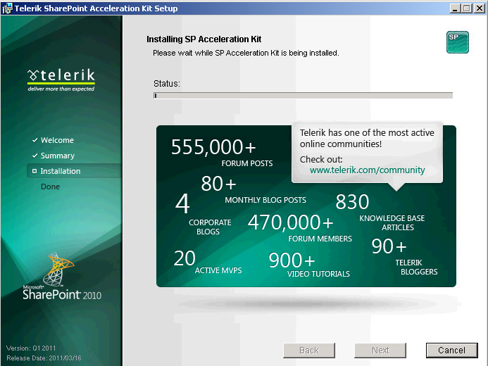 I havent been able to find an installation guide, so I run the msi file on a application server but the installation frezzes like shown in the attached image.