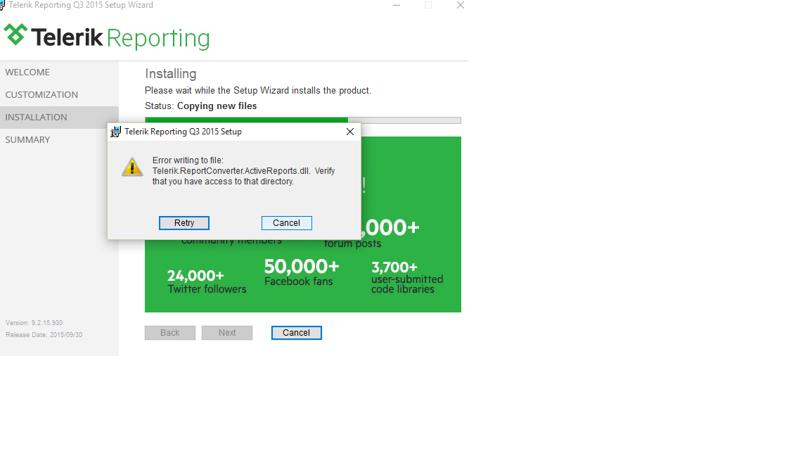 getting this error in the end of installation process. Error screen attached.