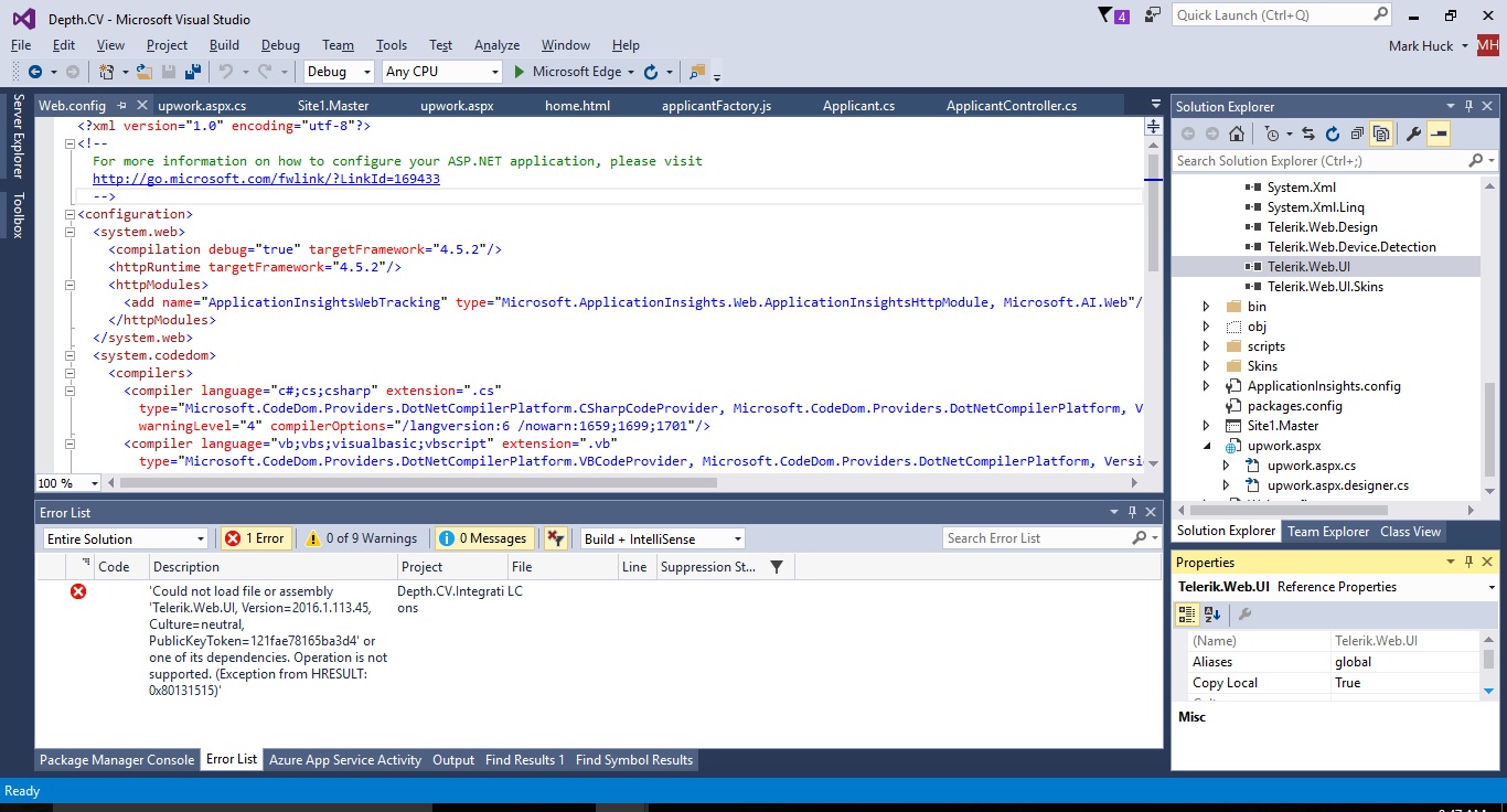 Note: a 'lib' folder with the Telerik DLL files was created when I opened the project, possibly by the Telerik extension... I have a support ticket in on the issue and am continuing to try to fix this one.