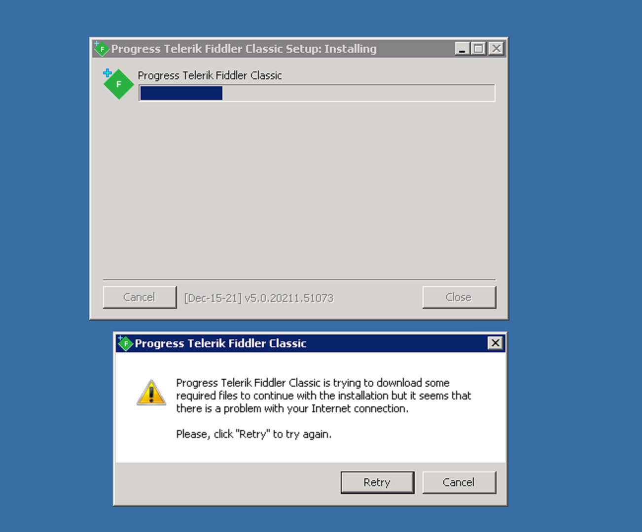 I have to revise my previous answer as it contains a wrongful statement! After consulting the dev team, it becomes clear that the Fiddler installer will check your NET version and will try to download the proper Fiddler build for it (and not the newest NET version). Based on the installed NET version, it will try to install the highest possible version of Fiddler.