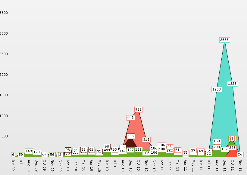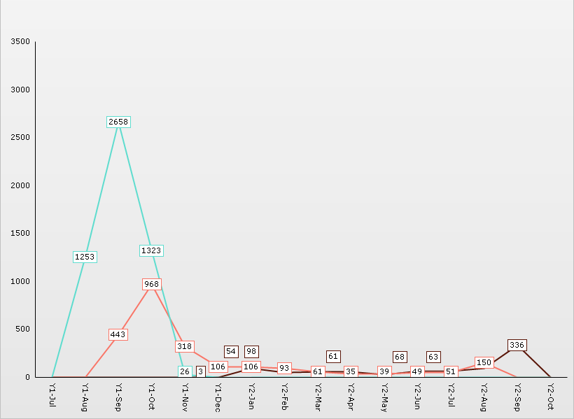 We are currently using RadControls for ASP.NET (not AJAX) Q1 2009, and upgrading is not yet feasible. We are trying to make the following charts more legible by using IntelligentLabelsEnabled, but the firs chart (all.png) seems to create and infinite loop when using it and the second does not show all datapoints. Is there anything that can be done aside from upgrading?