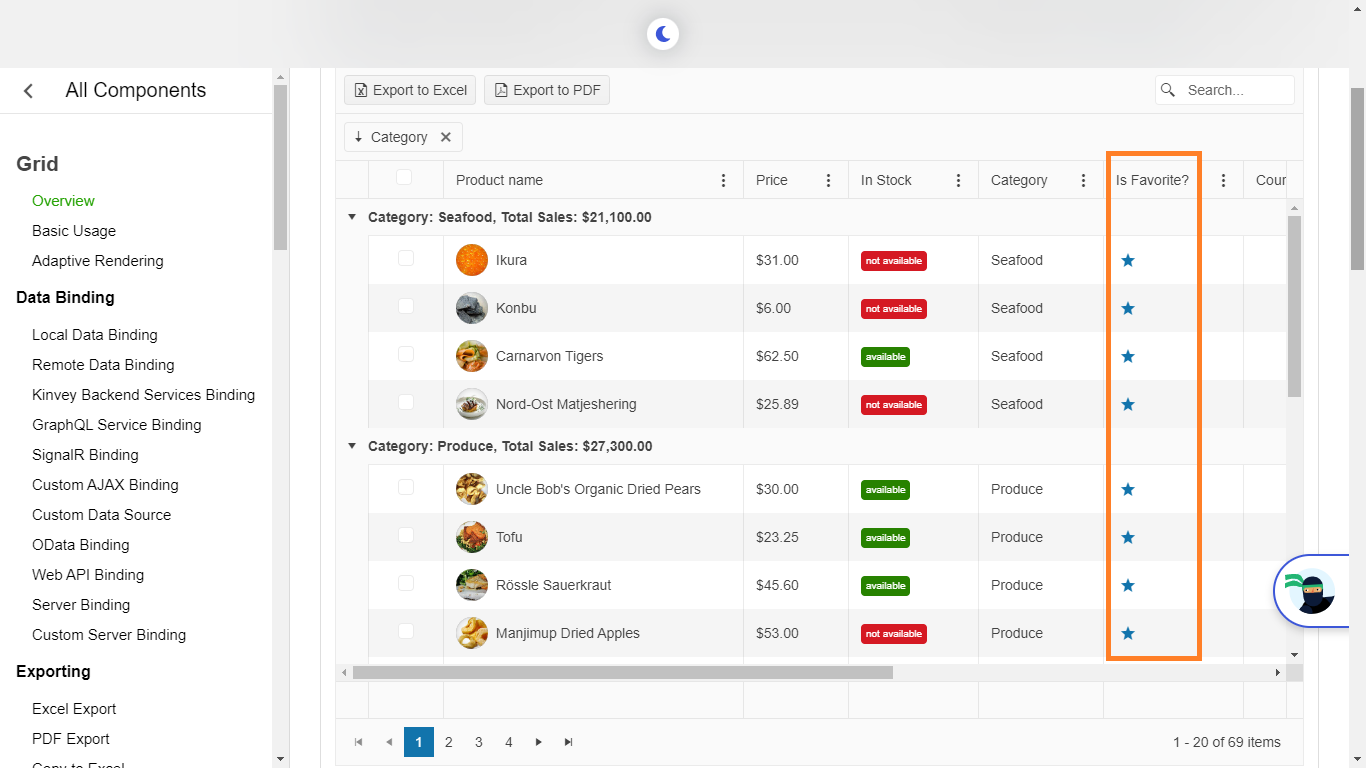 columns.Bound(p => p.IsFavorite).Title("Is Favorite?").Width(140).Editable("returnFalse").ClientTemplate(Html.Kendo().Rating()