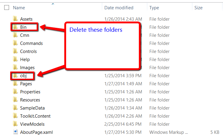Locate the bin and obj folders for that project (see the attached screenshot for guidance)