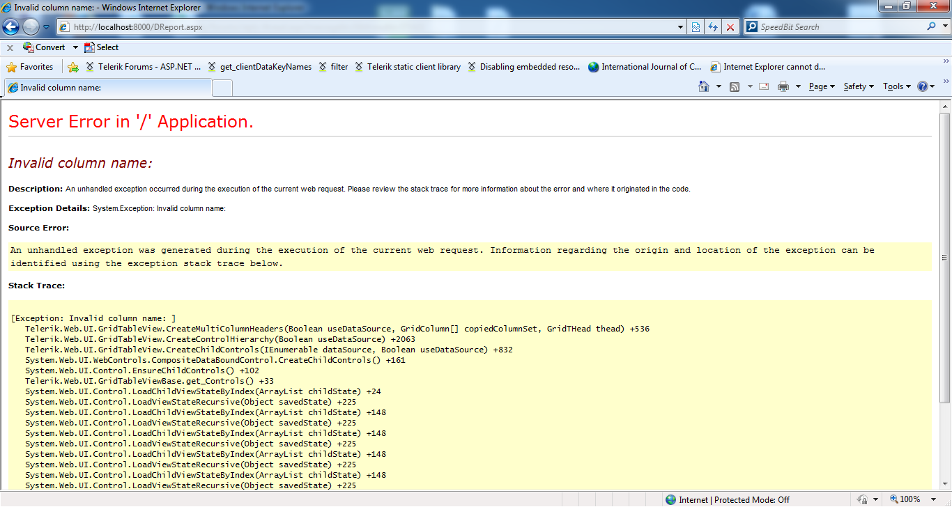 Invalid column name: